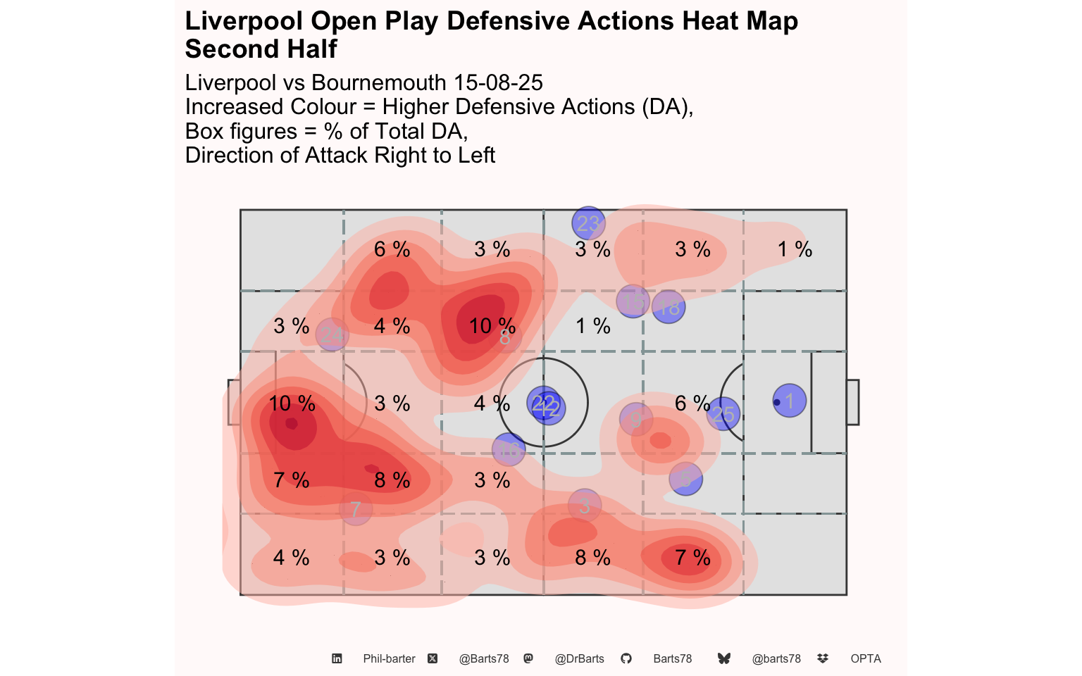 | Liverpool | 52.6% | 2.30 | 30 | 1 | 77.8% | 1 | 0 | 1 | 0 | 1 | 0 | 0 | 1 | 0.11 | 0.11 | 0.49 | 0.09 | 122.2% | 122.2% | 10 | 7 | 70.0% | 3 | 30.0% | 0 | 0.0% | 0 | 0 | 3 |