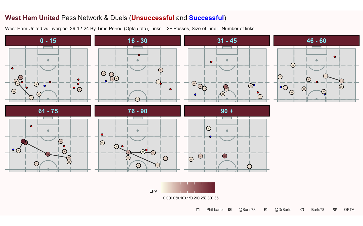 | West Ham United Open Play Defensive Actions EPV Performance | |||||