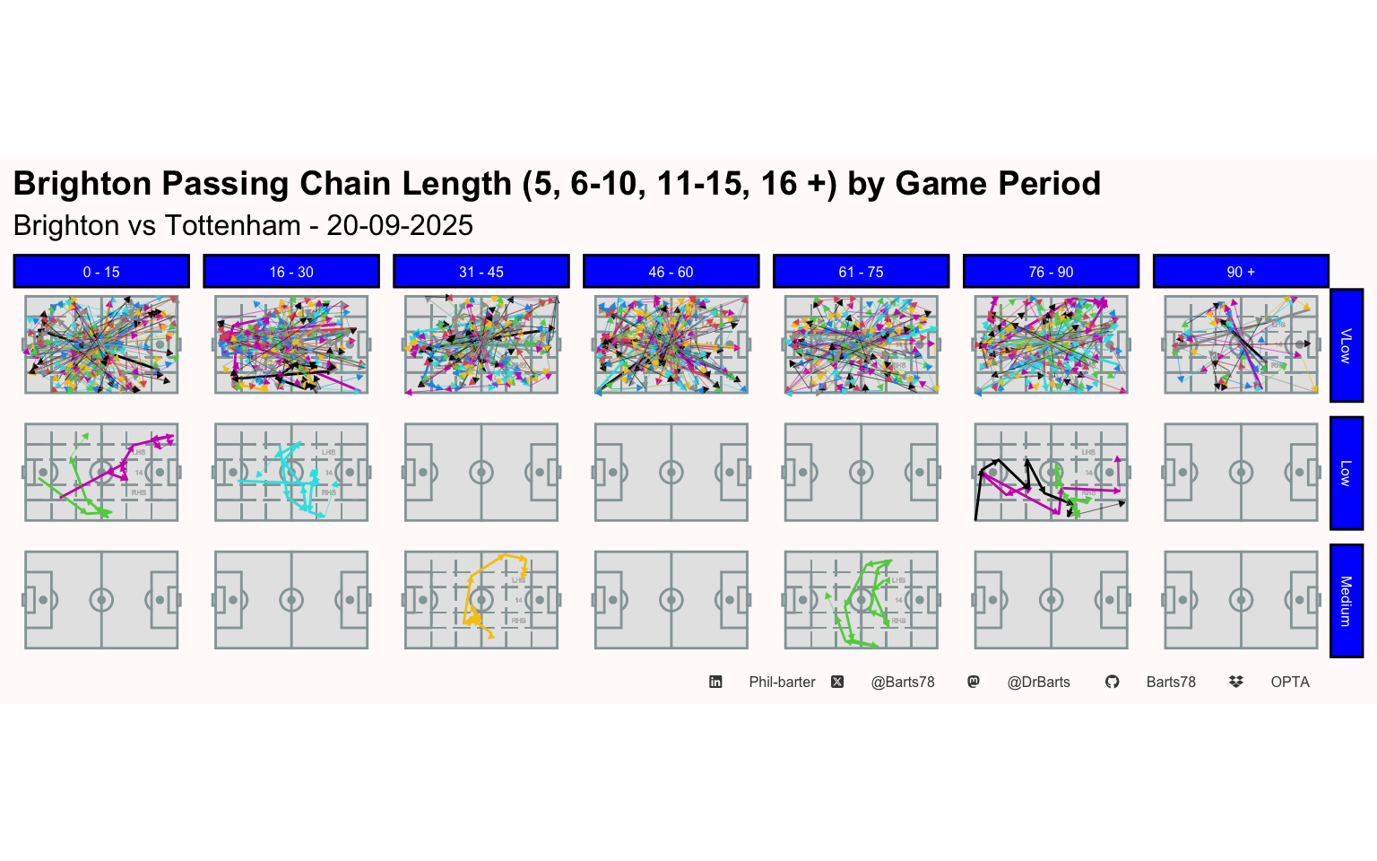 | Brighton Passing Chain Length (5, 6-10, 11-15, 16 +) & Distance (m) | |||||||||